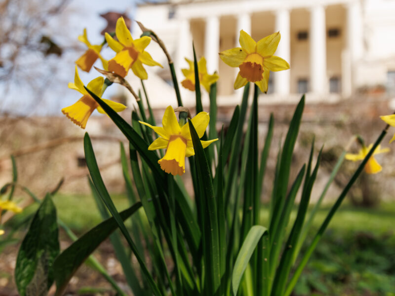 Ed è proprio in questo spazio che, con l’arrivo della primavera, accade qualcosa di inatteso: il sottobosco si accende di narcisi. Non in aiuole ordinate ma in una diffusione spontanea, naturale.