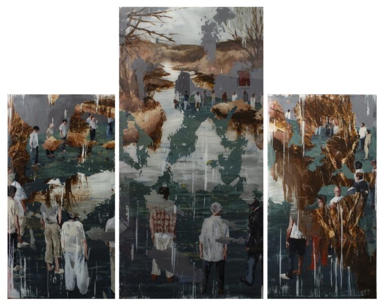 Il percorso espositivo comprende numerose opere, molte delle quali di grande formato, tra cui imponenti trittici su vetro eseguiti nel 2025 e l’installazione Bruma, che occupa un’intera sala della galleria. L’allestimento è concepito per accogliere il pubblico in una pinacoteca personale ed intima. L’artista spagnolo sembra ricordarci che la sua non è solo una ricerca formale, perché intende restituire alla forma anche l’anima, l’etica, l’impegno civile, tra l’essenza di un passato dimenticato, le nostalgie, i sogni e le memorie tradite nel presente.
