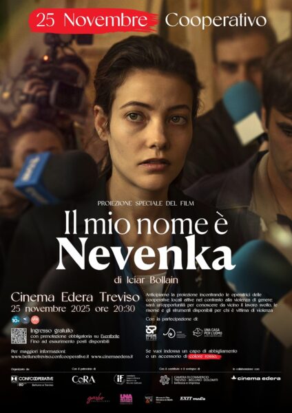 Treviso, 7 novembre 2025. Martedì 25 novembre Confcooperative Belluno e Treviso offre al pubblico una serata speciale di cinema e testimonianze per parlare di violenza di genere, dando voce alle operatrici delle cooperative impegnate nei centri di accoglienza, nelle case rifugio e nei punti d’ascolto della provincia.