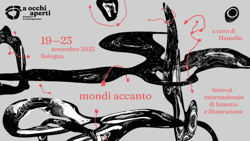 In ogni epoca, l’uomo ha immaginato il proprio futuro, tra sogni, paure e slanci collettivi. Eppure, questa spinta sembra essersi ora arrestata: il futuro si è ormai ridotto a un conto alla rovescia che opprime, è un’attesa, più che un futuro, e ci vede incapaci di reagire. E se anche le distopie, divenute ormai genere codificato, non riescono a essere più stimolo alla riflessione o all’azione, forse la chiave non è più guardare avanti, ma di lato: esplorare possibilità nuove, adiacenti alla realtà.Si muove da qui la terza edizione di A occhi aperti, il festival internazionale di fumetto e illustrazione ideato e organizzato da Hamelin, in programma a Bologna dal 19 al 23 novembre. Mondi accanto, questo il focus dell’edizione 2025, intende porsi come esplorazione – attraverso opere di fumetto, illustrazione e animazione – di queste possibili vie alternative a un futuro che sfugge.