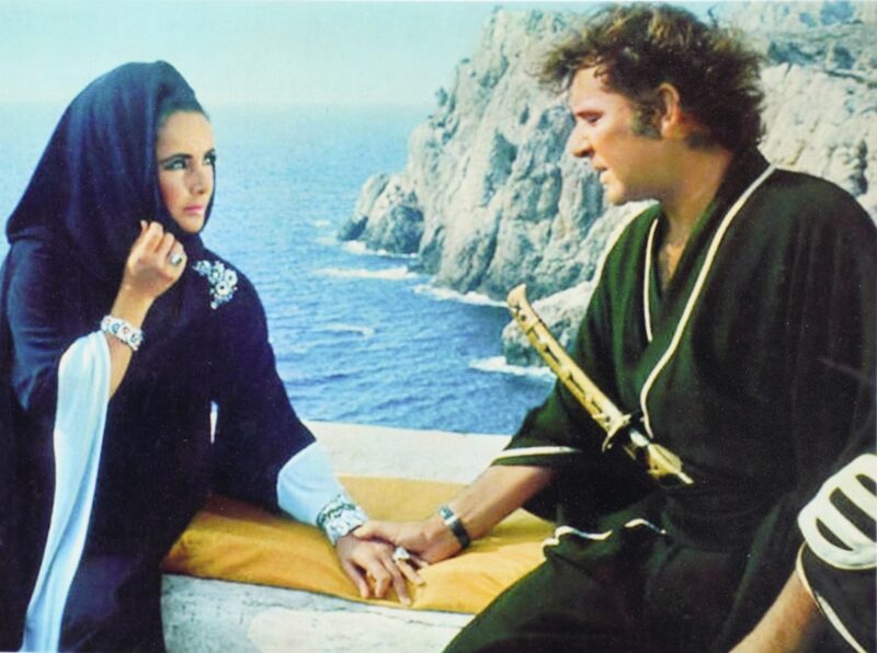 L’estate di Joe,Liz e Richard offre ampia ricostruzione delle location in cui si snoda il racconto, con generose riprese del promontorio di Capocaccia, dei flutti che si frangono sulle falesie rocciose, dell’incantevole penisola dove venne edificata la Villa bianca, the “White villa” diventata set del film. Il documentario incorpora clip estratte da Boom!, foto di scena, ritagli della stampa dell’epoca. Era l’11 agosto del 1967 quando venne dato il primo ciak, il 23 ottobre quando fu battuto l’ultimo. Il film uscì nel 1968, proprio nel fatidico mese di maggio culmine delle rivolte studentesche, mostrando un lato politico che all’epoca non era stato percepito: la parabola della ricca donna isolata nella sua villa-prigione era chiaro riferimento a una borghesia prossima alla sconfitta. Non a caso in tempi recenti il film è stato rivalutato fino a diventare un cult movie, una pellicola iconica. Lo spiegano nel documentario il regista di culto della scena indipendente USA John Waters, grande estimatore di Boom!, che racconta perché una pellicola così inetichettabile è diventata il film della sua vita. Mentre il critico cinematografico francese Michel Ciment, a lungo direttore della rivista Positif, offre una delle sue ultime interviste filmate e approfondisce l’ispirazione di Joseph Losey intorno a un film incompreso al momento della sua uscita, ma sorprendentemente visionario e profetico sulla disgregazione della borghesia. E scorrono le testimonianze di chi ha assistito alle riprese: come Patricia Losey, la moglie del regista Joseph Losey, che ricorda le giornate sul set a Capocaccia, schiudendo molti aneddoti legati alla genesi del film, alla scelta della location, all’arrivo dei divi in Sardegna e ai dialoghi fra Losey e i “divi” Elizabeth Taylor e Richard Burton. Anche l’attrice Joanna Shimkus – la moglie di Sidney Poitier – offre le sue preziose memorie, raccolte a Los Angeles: unica superstite del cast, nel film di Losey interpretava il ruolo della segretaria di Elizabeth Taylor. E c’è il fotografo internazionale Gianni Bozzacchi, riportato sul set di Alghero per rivivere i ricordi dei giorni della lavorazione: Bozzacchi fu il fotografo personale di Elizabeth Taylor e proprio con Boom! prendeva avvio la sua carriera e la lunga storia di collaborazione e amicizia con la star americana. A Roma il gioielliere Gianni Bulgari racconta il rapporto di Liz Taylor con i gioielli e spiega come i suoi preziosi che la diva indossava nel film abbiano rafforzato il carattere del personaggio. Il musicista anglo-indiano Viram Jasani, che giovanissimo sul set interpretò il suonatore di sitar, ricompone da Londra i suoi ricordi e aneddoti sull’atmosfera e i protagonisti di Boom!. Fra le voci vicine a Taylor e Burton anche quella di Jacques Durussel, al tempo del set giovane chef a bordo dello yatch Kalizma, e spesso al loro fianco anche nelle trasferte a Londra e nello chalet di Gstaad.