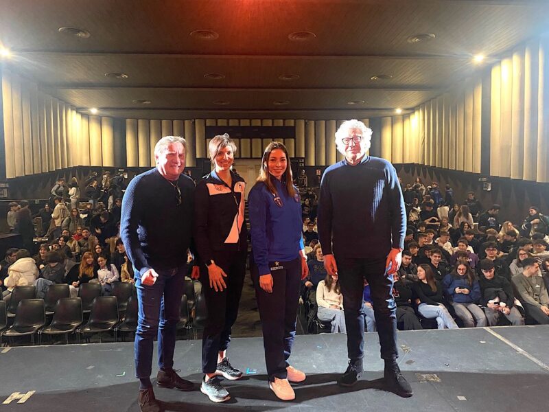 Mara Navarria, schermitrice italiana specializzata nella spada e super campionessa- – basti dire che ha vinto 27 oro mondiali, l’ultimo dei quali nella gara a squadre alle Olimpiadi di Parigi 2024 – e che a marzo affronterà l’ultima gara di Coppa del Mondo per poi “appendere la spada al chiodo”, ha raccontato la sua storia di atleta e di donna, madre di Samuele, nato nel 2013, testimoniando come sia possibile conciliare l’attività agonistica di alto livello con la vita familiare. Non ha nascosto i momenti difficili, suggerendo ai giovani di non avere mai paura di chiedere aiuto e di essere sempre padroni delle proprie scelte oltre che “gentili con voi stessi”. Consiglio arrivato anche da Marzia Caravelli, ex primatista italiana nei 100 metri a ostacoli e due Olimpiadi alle spalle, che ha raccontato in particolare del periodo in cui aveva deciso di abbandonare le gare (“avevo 26 anni, mi avevano detto che ero vecchia”) e che grazie alla sua caparbietà e all’incontro con un nuovo allenatore, due anni dopo, nel 2012, siglò in Francia il record italiano dei 100 metri a ostacoli (che era imbattuto da 17 anni) e nel 2014 quello dei 300 metri a ostacoli.