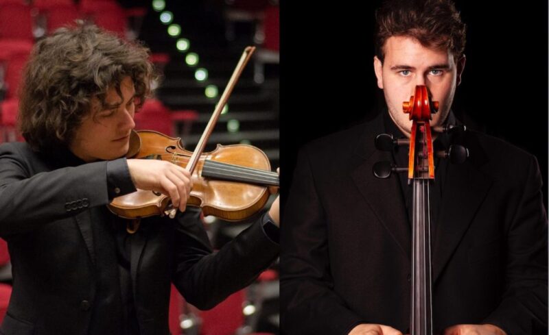 Il concerto di giovedì 4 settembre vede la partecipazione del duo violino/violoncello formato da Ernesto Campagnaro (violino) e Riccardo Baldizzi (violoncello). Entrambi i musicisti hanno iniziato i loro studi al Conservatorio di Castelfranco Veneto, per poi proseguirli presso il Conservatorio della Svizzera italiana a Lugano, e in entrambe le istituzioni hanno raggiunto il diploma con il massimo dei voti. Oltre che nel duo, sono entrambi impegnati in diverse formazioni cameristiche. Ernesto Campagnaro ha suonato per l’ Orchestra Filarmonia Veneta, I Musici di Parma, il Teatro La Fenice, l’orchestra Camerata Ducale e l’orchestra della Svizzera italiana (OSI). Riccardo Baldizzi ha suonato, sia in formazione da camera che da solista, con famosi musicisti e per vari enti e festival come Asolo Musica, l’ Accademia Perosi, Livorno Music Festival e l’Accademia Chigiana. Dal 2024 è il violoncellista del Quartetto Noûs.
