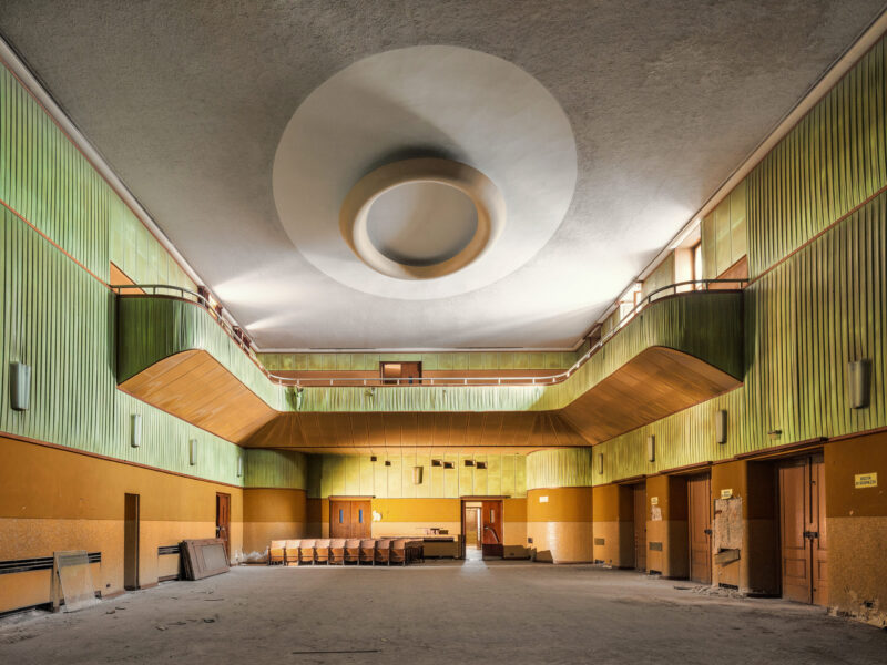 Un’attenzione particolare è rivolta ai luoghi abbandonati di Trieste. La città portuale custodisce uno strato architettonico unico: un monumentale gasometro, cinema un tempo pulsanti, edifici amministrativi vuoti, impianti portuali arrugginiti. Qui si intrecciano eredità industriale e malinconia urbana, formando un potente eco di visioni sociali passate.