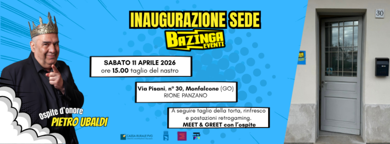 Segnatevi la data, sabato 11 aprile dalle ore 14.30 verrà inaugurata la sede dell’associazione BAZINGA EVENTI A.P.S. a Monfalcone (Rione Panzano) in via Vittor Pisani, 30, zona pedonale.