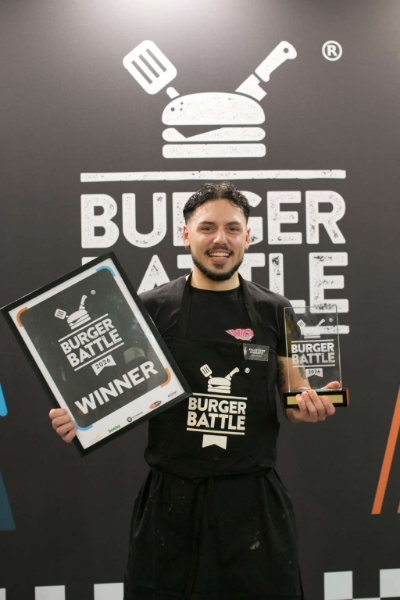 Si è chiusa ieri a Rimini, nella cornice di Beer&Food Attraction 2026, la finalissima di Burger Battle Italia, il talent nato nel 2018 che ogni anno incorona il Re dell’hamburger gourmet perfetto e seleziona il volto della manifestazione per l’anno in corso. A conquistare il titolo 2026 è stato Salvatore Diodato, di Unico Smash (Latina), premiato per equilibrio, creatività, oltre a gusto e carisma. Il burger vincitore, “Bad bacon jam”, era composto da arancia alla base, cheddar, carne di manzo/ burger di salmone panato e bacon jam, condito con salsa Teriyaki e accompagnato da patatine Scoops.