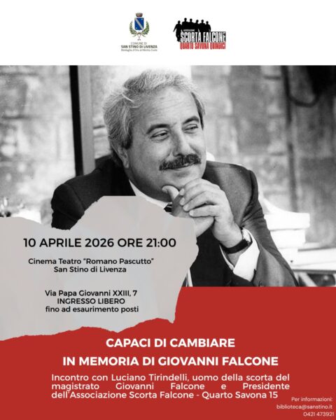 Una serata speciale per ricordare una delle pagine più tragiche della storia italiana degli ultimi trent’anni. Ma anche un’occasione significativa per riflettere sul tema delle mafie e contribuire a diffondere la cultura e l’etica della legalità, promuovendo la consapevolezza dell’importanza del contrasto a ogni forma di criminalità. Il Comune di San Stino di Livenza organizza l’evento “Capaci di cambiare – In memoria di Giovanni Falcone”. L’iniziativa si terrà venerdì 10 aprile, alle 21, al cinema teatro “Romano Pascutto”. L’organizzazione è stata possibile grazie alla collaborazione con un imprenditore locale.