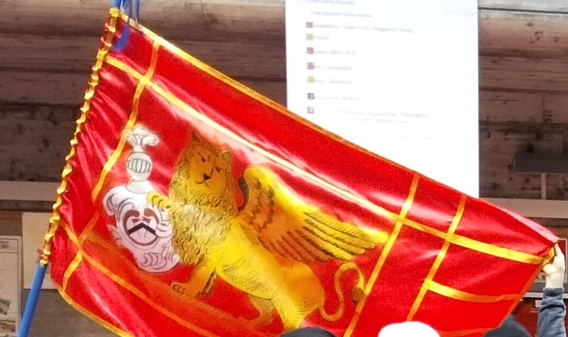 L’instabilità meteorologica ha limitato, quest’anno, ma non impedito il “Carnevale Civico Studentesco” friulano o, per meglio dire, “euroregionale”, manifestazione culturale civista udinese in quota Fogolâr Civic, risalente al 2000 ma rivisitata come evento scolastico dal 2010, a cura del prof. Alberto Travain, e riproposta nel corso degli anni in piccoli e grandi centri del Friuli, da Udine a Cividale sino a Palmanova, per approdare, dal 2023, al “quadrivio” storico regionale di Codroipo, proprio ad un passo dal Padre Tagliamento. “Rivoluzioni & contraddizioni”: il titolo dell’edizione 2026. “Utopie e rimembranze di cittadinanza al quadrivio d’Europa ossia prove tecniche di pianeta libero da ingiustizie sin dai banchi di scuola, nella tradizione carnascialesca di un sovvertimento memoria e speranza di un mondo migliore!”: così in locandina di una “manifestazione di cultura civica dell’Istituto Comprensivo di Codroipo/Codroip, ispirata alle suggestioni storico-civili del Carnevale in area Alpe Adria oltreché alla storia locale e universale delle ribellioni contro ogni tirannia, nel fiero solco delle tradizioni di moderno civismo culturale friulano”. Rimarcato il “gradito concorso di: Comune di Codroipo, Agjenzie Regjonâl pe Lenghe Furlane, Movimento Civico Culturale Alpino-Adriatico ‘Fogolâr Civic’, Circolo Universitario Friulano ‘Academie dal Friûl’, Gruppo culturale ‘Codroipo nel tempo’ fb…”. In programma imponente mobilitazione, come da manifesto: “Partecipano le Classi 1^A, 1^C, 1^D, 1^E, 2^C, 2^D, 3^B, 3^C e 3^E della Scuola Secondaria di Primo Grado ‘Giuseppe Bianchi’ di Codroipo insieme al Sindaco del Consiglio Comunale dei Ragazzi di Codroipo. Coordinamento culturale a cura del prof. Alberto Travain, con il distinto concorso dei colleghi prof.ssa Ketty Dal Lago, prof.ssa Roberta Decolle, prof. Alexej Giacomini, prof.ssa Annamaria Marnich, prof.ssa Marica Parussini, prof.ssa Paola Saro e prof.ssa Anna Savonitto oltreché la valida collaborazione dei docenti prof.ssa Cristina Benedetti, prof.ssa Elena Bianconi, prof. Daniele Cressa, prof.ssa Teresina Menegotto, prof.ssa Margherita Nigris e prof.ssa Lidia Zanetti nonché il supporto della prof.ssa Lucia Schilter, vicaria dell’Istituto Comprensivo presieduto dalla dott.ssa Erminia Salvador. Si ringrazia segnatamente lo studioso Maurizio Zorzini per il supporto culturale offerto. Un apprezzamento anche all’indirizzo del prof. Mario Banelli, fonte di utili notizie storiche…”. Giovedì 12 febbraio 2026, nella ricorrenza del Giovedì Grasso, la manifestazione si è tenuta presso l’ampia rotonda della scuola Bianchi. Uno scroscio di applausi all’ingresso delle mascotte dell’evento: “Sclesute” ossia la personificazione carnascialesca dello Scaglione araldico udinese e savorgnano, emblema storico, insieme al “Garoful”, della gran rivolta popolare friulana della “Joibe Grasse” 1511, primo riferimento della kermesse. In pugno, un stendardo purpureo con l’aquila e l’insegna udinese, vero cimelio del fogolarismo civico e accademico della Capitale del Friuli di quarto di secolo fa, rimontate agli esordi della manifestazione. Ad aprire l’edizione 2026 è stato il saluto dirigenziale alle scolaresche, a cura della vicaria prof.ssa Schilter, saluto seguito da emblematica offerta, ad una giovanissima “Done Int”, allegoria della cittadinanza, di una rosa simbolo della suddetta grande sedizione locale del Rinascimento, da deporsi tra le inferriate della torre locale delle Prigioni, “Bastiglia” codroipese, oggi sede museale, “in omaggio alle vittime e agli oppositori di antiche e nuove tirannie”. Quindi, “Done Int” ha provveduto subito a consegnare la simbolica dedica al nuovo direttore del museo civico, prof. Giacomini. Poi, gli appassionati interventi del Sindaco di Codroipo, dott. Guido Nardini, e dello storico Zorzini. A seguire, il momento topico della “Cerimonia delle Torri”, il rito più antico della manifestazione, ovvero la rassegna e l’abbattimento, da parte del Sindaco dei Ragazzi nonché delle altre autorità presenti, di nutrita schiera di torrioni allegorici, realizzati ed intitolati dalle scolaresche a mali e ingiustizie della società odierna, attualizzando l’archetipo costume veneziano del “Zioba Grasso”, che prevedeva la demolizione di castelletti simboleggianti la prepotenza dei nobili friulani, costume rimontante all’anno 1162 e chissà se ispiratore anche della suddetta ribellione plebea “marchesca” del Friuli al Carnevale 1511, contro la stessa feudalità! Dunque, “Bullismo”, “Disparità di genere”, “Disuguaglianza”, “Egoismo/Individualismo”, “Guerra”, “Inquinamento”, “Povertà”, “Razzismo”, “Violenza di genere”: ecco le “torri” o negatività contemporanee da abbattere secondo gli alunni di 1^A della “prof” Dal Lago, simpaticamente truccati da gatto, per ricordare le forze del Bene della più arcaica tradizione friulana ovvero i “Benandants”, in eterno conflitto con le incombenti negatività sulla comunità locali. Ed il Leone e il Gatto dei “Benandants” anche ben in vista sulla bandiera confezionata dalla scolaresca! Come non ricordare gli agguerriti bimbi delle compagnie “dal Gjat”, che sfilarono, al rullo dei tamburi, alla prima udinese della manifestazione, nel lontano 2000? Ed ecco, poi, la “Cerimonia del Cappello”, ispirata alle consuetudini carantane o sloveno-carinziane inerenti ai principi di democrazia e sovranità popolare, matrice storica delle genti che ripopolarono il Medio Friuli dopo le invasioni barbariche ed eredità della Grande Carinzia, dal Garda al Semmering, i cui usi civili stupivano l’Europa dei tempi andati ed avrebbero ispirato gli Stati Uniti. Autorevole “Siôr Popul” ha imposto così un bel berretto rustico – anch’esso cimelio civista udinese, indossato da sindaci e personalità – al Primo Cittadino gio