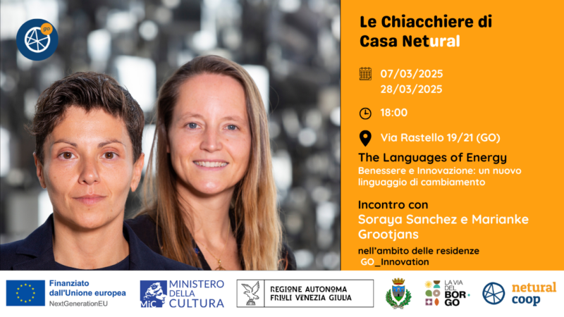 Da settembre 2024 le residenze accolgono a Casa Netural innovatori provenienti da tutto il mondo, che portano sul territorio nuove visioni e progettualità. Tra i protagonisti delle prossime settimane troviamo Soraya Sanchez e Marianke Grootjans che dalla Spagna porteranno insieme a Gorizia il loro progetto di residenza “The Languages of Energy”.
