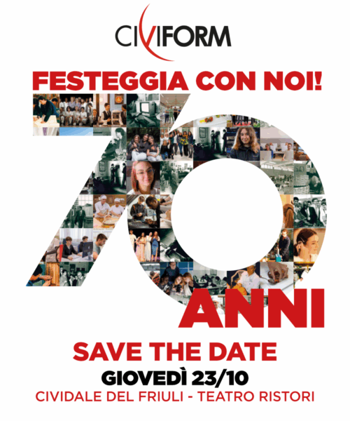 Nell’occasione verrà anche presentata la pubblicazione celebrativa dedicata ai 70 anni di Civiform. Seguirà un pranzo a cura degli allievi Civiform seguito da una visita ai laboratori didattici.