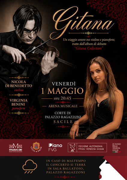 Il concerto sarà l’occasione per presentare al pubblico un viaggio musicale tra il violino e il pianoforte, tratto dal suo album di debutto “Gitana Collection”, realizzato con il celebre pianista Bruno Canino e pubblicato in digitale il 10 aprile scorso su tutte le principali piattaforme di streaming online. Un percorso intenso e suggestivo, tra virtuosismi e sonorità evocative ispirate alla tradizione gitana.