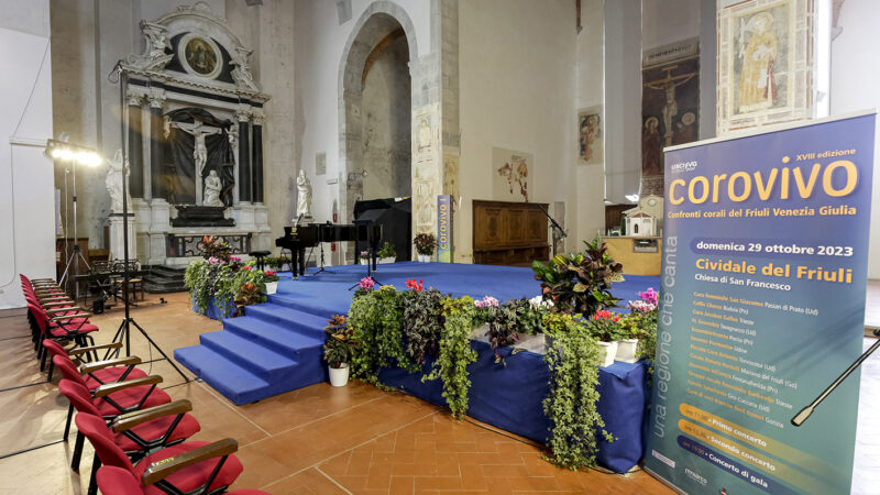 Quattordici cori, altrettanti programmi tematici per una grande celebrazione della passione corale nella regione Friuli Venezia Giulia: è questo il programma di Corovivo, una giornata intera di concerti con gruppi provenienti dall’intero territorio regionale, in programma domenica 26 ottobre nella chiesa di San Francesco a Cividale del Friuli. L’ingresso sarà gratuito per tutte le fasi di questi confronti corali che inizieranno alle ore 11.00 per proseguire fino al concerto di gala delle ore 19.30.