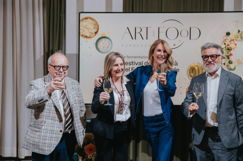 In copertina: il brindisi d’inaugurazione di Pordenone ArtandFood 2025 (da sx: il Vicepresidente della Camera di Commercio di Pordenone-Udine Michelangelo Agrusti, Sabrina Marian di TEF-Camera di Commercio, Ellen Hidding, Gabriele Giuga, direttore artistico del festival) (photo Gino Nardo / Michele Canisela Del Pup)