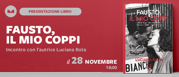 Venerdì 28 novembre alle 18, alla Libreria Erickson, la giornalista e scrittrice Luciana Rota presenta “Fausto, il mio Coppi”, un romanzo che racconta la grande storia d’amore tra Bruna Ciampolini e Fausto Coppi, un amore appassionato segnato da gloria, abbandono e tragedia.