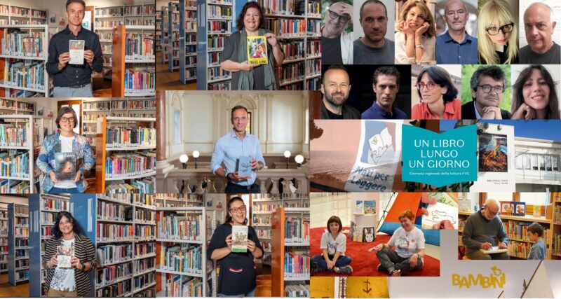 Alla Giornata regionale della Lettura in Friuli Venezia Giulia partecipano quest’anno comuni, scuole, biblioteche, cittadini e anche le residenze per anziani. Il sostegno speciale degli “Ambasciatori” di lettura: fra gli altri Federica Manzon, Andrea Maggi, Gian Mario Villalta, Mary Barbara Tolusso, Alberto Garlini, Francesco De Filippo, Tullio Avoledo, Andrea Segrè, Odette Copat, Antonella Sbuelz, Enrico Galiano, A loro si aggiungono gli Angeli di pordenonelegge, i giovani volontari del festival che amano leggere. Gli omaggi alla Pimpa di Altan a Grado, con la partecipazione del grande disegnatore, e a Udine, con la maratona di letture davanti alla mostra di Pimpa 50. E per tutti letture inclusive con Tactile Go! e i libri accessibili.