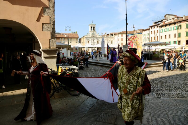 Ha avuto, poi, luogo la “Tamburade” o civica apostrofe per il Compleanno della Città, presso la Scala di Mercatovecchio, antico accesso alla Loggia comunale, vent’anni or sono eletto “Speakers’ Corner” locale contemporaneo. Ecco che, ad infiammare positivamente gli animi del folto pubblico assiepato ai piedi della balaustra, ci ha pensato senz’altro il prof. Travain, con una fiera allocuzione volta a commemorare il cinquecentenario del contro-parlamento popolare friulano rivoluzionario della Contadinanza, di cui quella scala vide i primi albori, quando davvero Udine era riferimento per il territorio e per le sue istanze. Capitale vera, popolare, amata, non mero sfondo per sagre, concerti e partite di calcio e maratone varie…