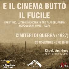 A cura di Lucio Fabi, in collaborazione con La Cineteca del Friuli, GemonaMercoledì 26 novembre, ore 18,30 presso la sede del Circolo Arci Gong di Gorizia, l’ultimo appuntamento della rassegna “E il cinema buttò Il fucile. Pacifismo, lutto e memoria in tre film del primo dopoguerra” curata da Lucio Fabi presenta l’inedito filmato dei primi anni Venti riguardante il Pellegrinaggio delle madri e vedove di guerra milanesi sui cimiteri della Grande Guerra.