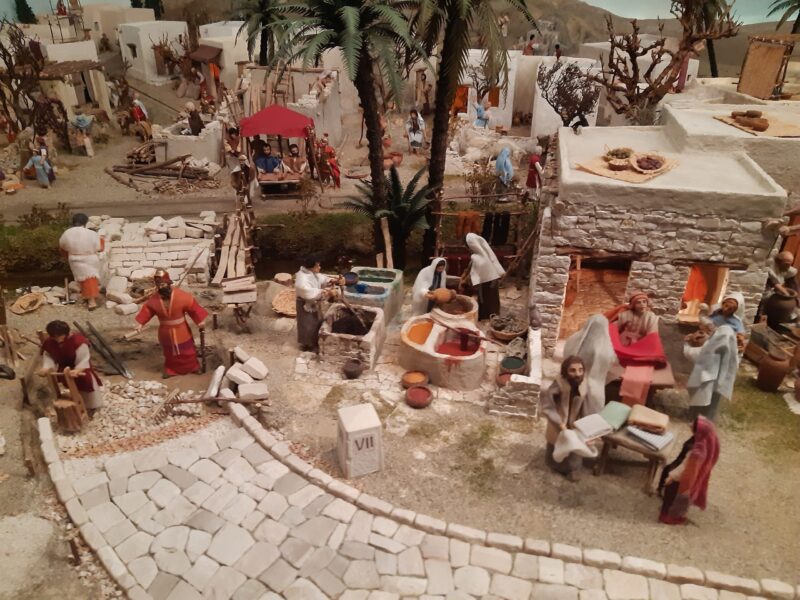 Una nuova generazione di giovani, armati di passione e delle nuove competenze acquisite nei rispettivi ambienti professionali, decise di “ripartire da zero”. Nacquero così le fondamenta della “Terza Macchina”, il presepe che conosciamo oggi. La novità non fu solo meccanica, ma anche scenografica: si abbandonò lo scenario tradizionale locale per adottare un’ambientazione fedele al paesaggio palestinese, con l’intento di rappresentare minuziosamente la vita e i mestieri ai tempi della nascita di Gesù. Oggi, il Presepe Animato di Perteole è un capolavoro di miniatura e meccatronica, la continua evoluzione lo ha portato a integrare pienamente le moderne tecnologie. Il vasto e complesso sistema elettro-meccanico, che muove centinaia di personaggi in scene di vita quotidiana e mestieri, è interamente sincronizzato e gestito da un computer. Questo garantisce una precisione millimetrica nell’alternanza del ciclo giorno/notte, negli effetti luminosi e sonori, rendendo l’esperienza per il visitatore non solo devozionale, ma profondamente immersiva. Questa opera, che celebra il secolo di storia e di devozione comunitaria, è un chiaro esempio di come la tenacia e la creatività friulana abbiano saputo mantenere viva una delle più sentite tradizioni natalizie, trasformandola in un’attrazione di rilievo regionale. Gli organizzatori sono lieti di offrire la possibilità di visite guidate riservate a comitive e gruppi numerosi (di almeno 15-20 persone). Queste visite possono essere effettuate anche in giorni e orari diversi da quelli prestabiliti per l’apertura al pubblico, previa concordo dell’appuntamento con qualche giorno di preavviso. Durante la visita, avrete l’opportunità di ricevere un’illustrazione dettagliata del presepe e della sua storia. Per prenotazioni e per concordare un appuntamento, si prega di telefonare ai numeri: 349 0569736 o 377 2827525, inoltre, presso la sala espositiva, è disponibile la pubblicazione che ripercorre “un secolo di storia del presepe”.