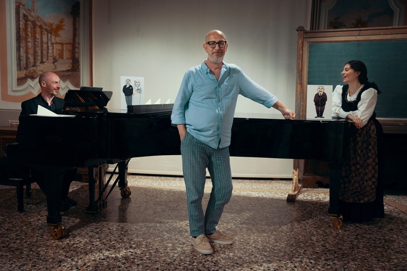 Nel nuovo spettacolo Il Matto dei Sassi, omaggio al fondatore del Museo Carnico, Michele Gortani è protagonista silenzioso della narrazione. Non è lui a raccontarsi in prima persona: a ripercorrere la sua avventura umana e terrena sono una serie di personaggi che con lui hanno intrecciato i propri destini. Figure bidimensionali, disegnate da Francesco Tullio Altan e animate dall’attrice Giulia Cosolo intorno al pianoforte a coda del Museo, danno voce a vicende drammatiche e ironiche, private e pubbliche, accompagnate dalle musiche dal vivo del pianista Daniele Russo.