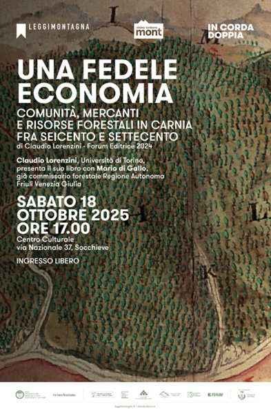 Sabato 18 ottobre, alle 17.00, al Centro Culturale di via Nazionale a Socchieve, Claudio Lorenzini presenterà con Mario Di Gallo il suo libro “«Una fedele economia». Comunità, mercanti e risorse forestali in Carnia fra Seicento e Settecento”. Pubblicato da Forum Editrice, il volume ricostruisce la storia della gestione dei beni collettivi nella Carnia tra Seicento e Settecento, quando la Repubblica di Venezia avviò una vasta ricognizione dei propri boschi, prati e pascoli. Sullo sfondo della crescente “corsa al legno”, le comunità alpine si trovarono al centro di interessi e conflitti economici, tra esigenze di mercato e tutela del territorio. Il libro indaga la complessa filiera del legname – dalle istituzioni ai mercanti e alle maestranze – ponendo l’accento su temi di sostenibilità, economia e identità collettiva.