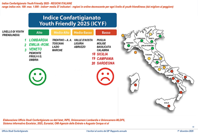 L’indice messo a punto da Confartigianato misura la capacità di un territorio di attrarre, trattenere e sostenere le nuove generazioni su 27 indicatori in quattro aree tematiche