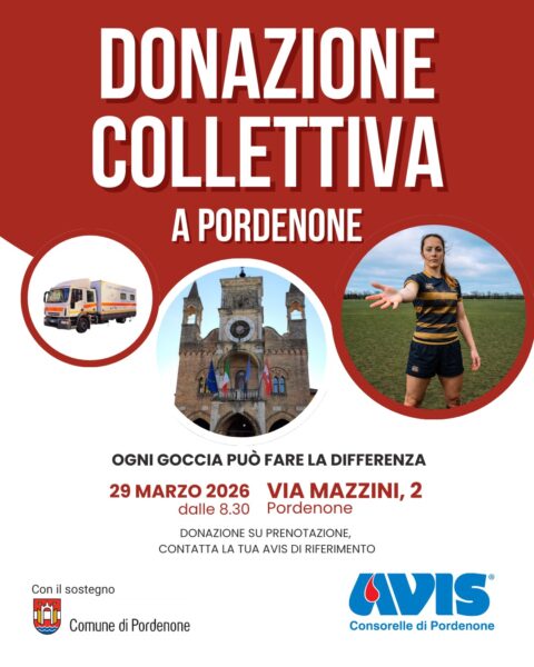 Domenica 29 marzo il cuore di Pordenone si tingerà di solidarietà grazie a un’importante iniziativa promossa dalle AVIS di Pordenone: per la prima volta, infatti, le Comunali di Borgomeduna, Centro, Rorai Grande, Torre, Vallenoncello e Villanova uniranno le forze per una raccolta straordinaria con autoemoteca. L’evento si svolgerà in una posizione centrale e di grande visibilità, in piazzetta Cavour, trasformando uno dei luoghi più frequentati della città in una vera e propria vetrina di sensibilizzazione sul valore della donazione di sangue e plasma.
