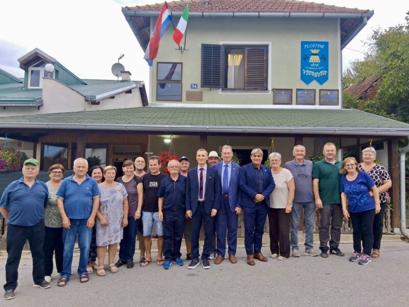 A Plostine, la delegazione ha incontrato i connazionali della Comunità Italiana “Libertà” presieduta da Ivan Tome, ricordando l’impegno ventennale per lo sviluppo sociale e culturale del territorio portato avanti dal compianto presidente Antun Brunetta.
