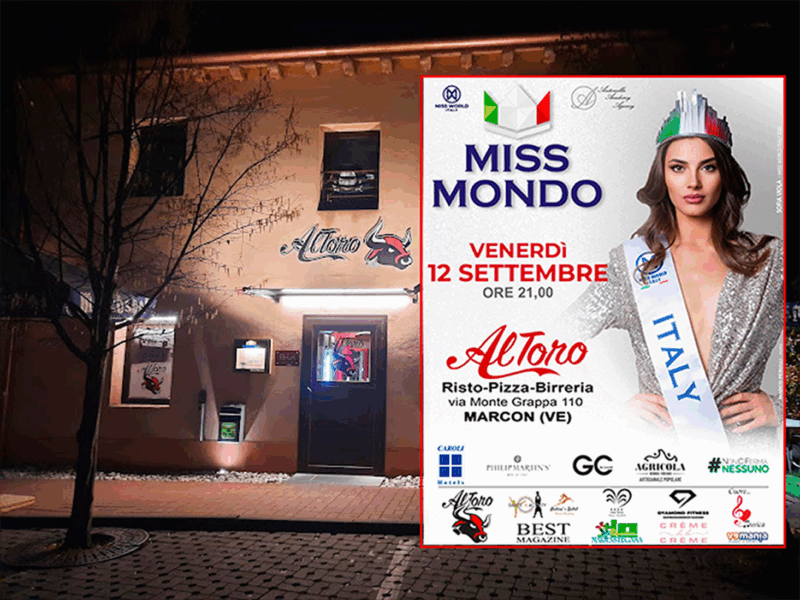VENERDì SERA 12 SETTEMBRE EVENTO DI MISS MONDO “AL TORO” DI MARCON