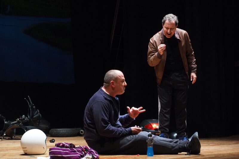 A portarla in scena sarà la compagnia stabile TeatrOfficina – Teatranti di Frodo di San Marcello (AN), con l’adattamento e la regia di Michele Ceppi. Sul palco, Marco Castellani e Luca Cioccolanti interpretano due uomini coinvolti in un incidente stradale: Aurelio, cuoco di successo e conduttore radiofonico, sicuro di sé e arrogante; Claudio, disoccupato e incerto, alla ricerca disperata di un riscatto personale. Due archetipi dell’uomo contemporaneo, che si scontrano – fisicamente e simbolicamente – in una surreale attesa dei soccorsi. Un testo che alterna ironia tagliente, comicità spiazzante e spunti di riflessione sul nostro tempo.