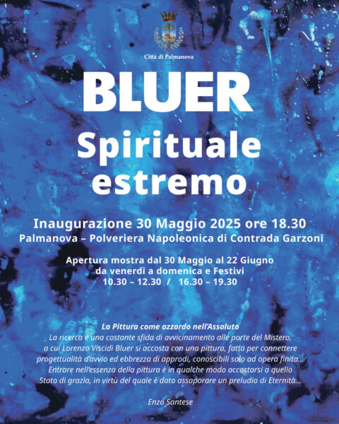 Venerdì 30 maggio, alle 18:30, in Polveriera Napoleonica di Contrada Garzoni, l’inaugurazione della mostra “Spirituale Estremo” di Lorenzo Viscidi, in arte Bluer. La rassegna rimarrà aperta fino al 22 giugno e sarà visitabile dal venerdì alla domenica e nei giorni festivi (10:30>12:30 e 16:30>19:30).