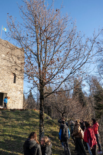 PALUZZA – La sostenibilità ambientale e sociale e l’attenzione ai valori umani sono al centro del progetto legato alla “Foresta dei Giusti” in Friuli Venezia Giulia: partner di riferimento è il Comune di Paluzza che, dopo aver dedicato un anno fa una quercia alla nuotatrice siriana Yusra Mardini, per l’eroico salvataggio di un gruppo di profughi prossimi al naufragio nelle acque del Mediterraneo, ha intitolato nella mattinata di ieri – venerdì 28 novembre – un acero campestre, situato in prossimità della Torre Moscarda, alla memoria di Paul Grüninger, il capitano della polizia cantonale di San Gallo che curante la Seconda Guerra mondiale aveva salvato centinaia di ebrei, falsificando e manipolando documenti per consentire alle famiglie ebree provenienti dall’Austria di cercare rifugio in Svizzera. Processato dalle autorità del suo Paese con l’accusa di aver permesso illegalmente l’ingresso di 3.600 ebrei in Svizzera, Grüninger venne dichiarato colpevole dal tribunale di San Gallo nel 1941. Trent’anni dopo, nel 1971, è stato però riconosciuto Giusto tra le nazioni. Il tributo di Paluzza, città di montagna situata proprio al crocevia transfrontaliero, va quindi quest’anno a un “Giusto” che ha vegliato non solo sui confini del suo Paese, ma anche sui valori umani, in un tempo tormentato e a rischio della sua vita. L’iniziativa rientra nel più vasto cartellone “La memoria del legno”, promosso e curato da Damatrà onlus in sinergia con la Regione autonoma Friuli Venezia Giulia – Assessorato alla Cultura, capofila il Comune di Spilimbergo. Partner di riferimento del progetto è l’organizzazione internazionale no profit Fondazione Gariwo – La Foresta dei giusti. Info damatra.com. La cerimonia di intitolazione ha registrato la partecipazione del Vicesindaco di Paluzza Fabrizio Dorbolò e dell’Assessore all’Istruzione Paola Monai, che nella sala consiliare hanno accolto una rappresentanza degli studenti e studentesse dell’Istituto Comprensivo Linussio – Matiz insieme alle loro famiglie, ospite speciale la cantautrice Nicole Coceancig, che ha intonato insieme ai ragazzi e alle ragazze alcune canzoni dal suo album Zohra, accompagnando le riflessioni degli studenti sull’accoglienza e sull’identità di confine. Subito dopo, i partecipanti sono saliti alla Torre Moscarda per l’intitolazione dell’acero a Paul Grüninger. Gli studenti e le studentesse hanno appeso all’albero alcune campane in terracotta realizzate in classe: l’albero diventerà così un custode della memoria del bene, e il suono delle campanelle ricorderà a tutti che la memoria va coltivata con cura. Una targa con QR code sull’albero permetterà di approfondire la biografia del dedicatario.