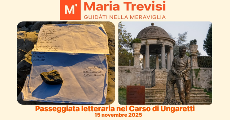 Una volta rientrati a San Martino del Carso ci sposteremo (5 minuti con le proprie auto) presso il Parco Ungaretti. Qui le installazioni artistiche dedicate alle poesie del “Porto Sepolto” ci accompagneranno in un viaggio simbolico nella vita del Poeta.