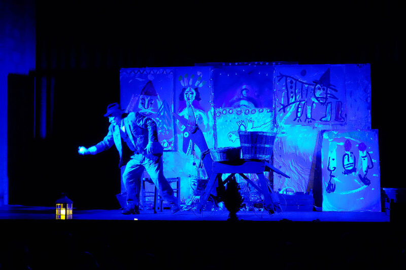 Con un disegno luci ben studiato per rendere i colori e le suggestioni natalizie, Gastaldo, il vecchietto che conduce il carrettino dei regali con l’inseparabile ciuchina Gelsomina, si ferma a raccontare le storie della sua esperienza coi “portatori di regali”: Babbo Natale, la Befana, Santa Lucia, San Nicola, i Re magi. E le disegna anche, queste storie, dipingendo in scena dei quadri che poi sono stati regalati al pubblico con dedica. Musica, movimenti scenici curati, burattini divertenti, una palla luminosa: sono tante le componenti narrative di questo spettacolo che incanta e affascina, soprattutto per quel mix di luce e buio che fa già respirare le atmosfere tradizionali della notte santa.