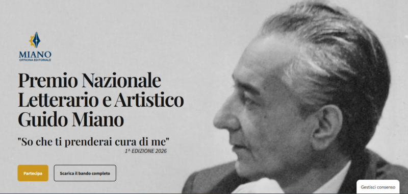 E’ nato il Premio Nazionale Letterario Artistico Guido Miano “So che ti prenderai cura di me”, Prima edizione 2026, promosso da Miano Officina Editoriale e Guido Miano Editore.
