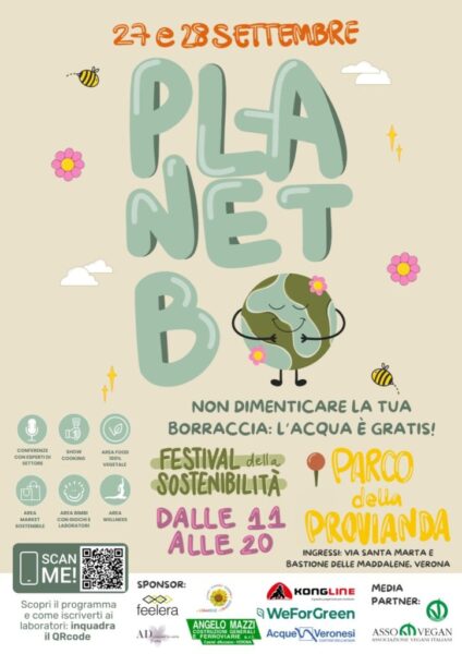 Dopo il successo della prima edizione ritorna Planet B, il festival dedicato alla sostenibilità e al vivere responsabile, il 27 e 28 settembre 2025 nello scenario naturale del Parco della Provianda a Verona.