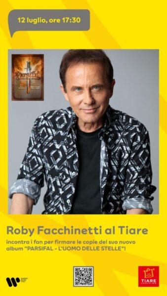 Villesse, 1 luglio 2025 – Sabato 12 luglio, a partire dalle ore 17:30, presso Piazza Maravee al Tiare Shopping, Roby Facchinetti sarà protagonista di un firmacopie dedicato al nuovo album “PARSIFAL – L’UOMO DELLE STELLE”.