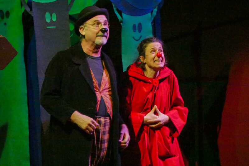 “Cappuccetto rosso, il Lupo e altre assurdità”, premio “Briciole di fiaba 2017”, è una rivisitazione comica e surreale della celeberrima fiaba dei Grimm. La narrazione diverte e sorprende grazie a un tocco di originalità e follia. Cappuccetto Rosso, interpretata dalla brillante Evarossella Biolo, è riluttante a seguire il copione tradizionale: preferirebbe andare allo zoo piuttosto che affrontare la temibile nonna, nota per il suo “vizio di mordere”. Il Lupo, impersonato dall’esilarante Marco Artusi, è un bonaccione che parla in grammelot (tecnica espressiva che combina suoni, onomatopee, parole inventate, dialetti e frammenti di lingue reali). Oltre ad essere confuso sull’aspetto della protagonista, deve inventare improbabili piani per portare a termine il suo ruolo di antagonista, imbeccato dalla voce narrante. Quando Cappuccetto e il Lupo si incontrano, però, accade l’imprevedibile: i due scoprono di avere molto in comune, compresa la paura della mordace anziana. Il finale stravolge i canoni tradizionali, lasciando spazio a una morale di amicizia e comprensione. Tante risate e applausi, e un affollato intrattenimento con gli attori per le curiosità ed i complimenti finali.