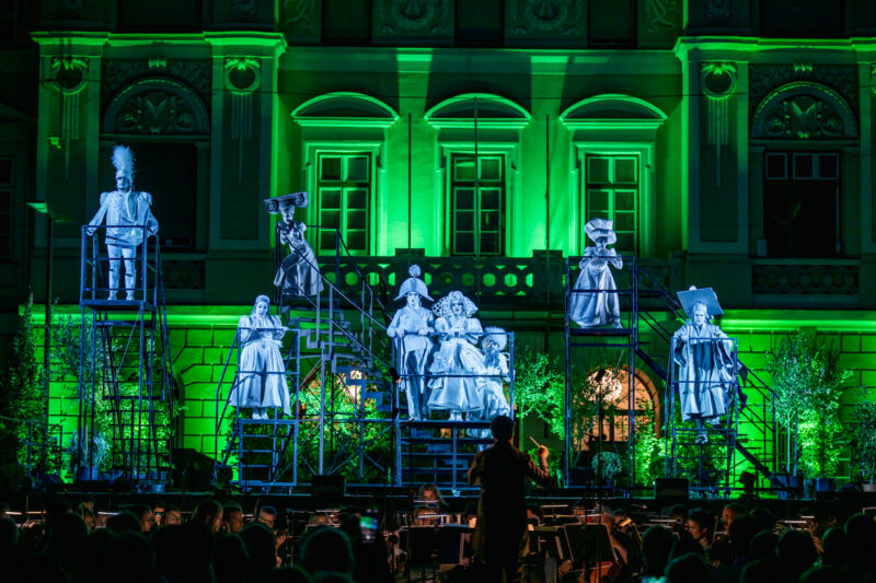 Emozione e meraviglia per l’allestimento scenico, firmato con una regia molto dinamica dal regista croato Marin Blažević, con gli spiritosi costumi di Sandra Dekanić, e dallo scenografo, light e video designer austriaco di fama mondiale Wolfgang von Zoubek, che ha “vestito” la piazza e la stazione di colori, effetti luminosi e atmosfere che hanno letteralmente incantato il pubblico.