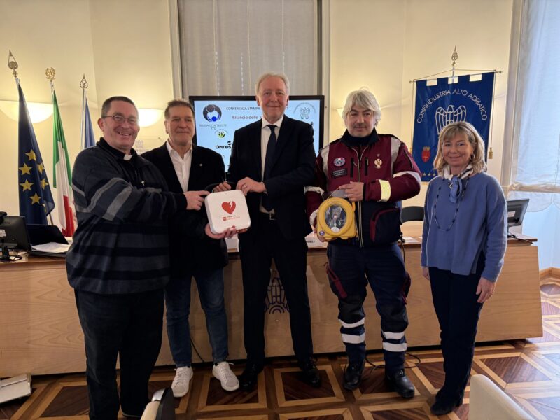 Trieste, 6 febbraio 2025 – 6 erogazioni finanziarie a favore di soggetti che a vario titolo si occupano di finalità umanitarie e volontaristiche sul territorio di Trieste e 2 partecipazioni a progetti di solidarietà, per un ammontare complessivo di 10.000 € di contributi sul territorio, sono in sintesi i cardini delle attività 2024 promosse da Solidarietà Trieste ETS presentati questa mattina dal Presidente Roberto Gerin. Il 2025 dell’Associazione di volontariato di “secondo livello” si apre con la donazione di due defibrillatori, che sono stati conferiti alla Parrocchia San Giovanni Decollato di Trieste e all’ODV Gruppo Volontariato e Protezione Civile dell’Associazione Nazionale della Polizia di Stato di Trieste. Alla presentazione sono intervenuti inoltre: Don Alessandro Amodeo, Parroco della Parrocchia San Giovanni Decollato, Massimo Metlica, Presidente dell’ODV Gruppo Volontariato e Protezione Civile della Associazione Nazionale della Polizia di Stato di Trieste, Massimo Tognolli, Assessore alle Politiche Sociali del Comune di Trieste e da Sonia Lussi, Coordinatore Servizio Ricerca e Innovazione, Confindustria Alto Adriatico.