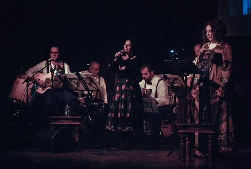 Ad accompagnare questo viaggio plurisensoriale, un quintetto di talentuosi musicisti: Marco De Biasio (cajón, bombo, percussioni, colori ritmici), Peter Diaz Castillo (voce, quatro, chitarra), Raimondo Miotti (pianoforte), Fabio Moreale (voce, contrabbasso, quena), Marco Zancani (chitarre) che riproducono le melodie latinoamericane dell’epoca, perfetta cornice musicale alla narrazione di Tullia De Cecco.