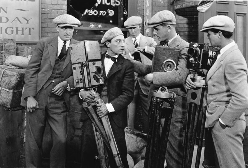 The Cameraman, l’ultimo film del periodo d’oro di Keaton e uno dei suoi preferiti, è il primo distribuito dalla Metro-Goldwyn-Mayer, ma il passaggio alla casa di produzione non fu una scelta felice, come riconobbe in seguito Buster, per i limiti imposti alla sua libertà creativa. Tuttavia in The Cameraman, diretto con l’amico Edward Sedgwick, Keaton riuscì ad avere il controllo della situazione e a portare con sé tutti i collaboratori più fidati. Conosciuto in Italia anche con il titolo Io e la scimmia, il film racconta le disavventure di un fotografo e cineoperatore maldestro che aspira a essere assunto dal cinegiornale MGM e a far colpo sulla ragazza che lavora nella redazione. A un certo punto della storia gli si affianca la scimmia del titolo, che diventa una coprotagonista del film. Da notare che per la scimmia non era un debutto, avendo già partecipato a film di Chaplin e Harold Lloyd.