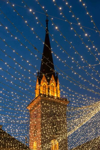 Durante l’Avvento (dal giovedì alla domenica), il campanile di St. Jakob — il più alto della Carinzia — apre per la prima volta ai visitatori. Dalla cima, dopo 239 gradini, si ammira una vista mozzafiato sul centro di Villach, tra luci, decorazioni e la magica atmosfera natalizia che avvolge la città.