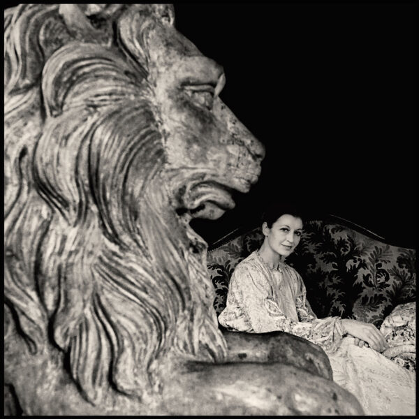 “Sono passati diversi anni, ma il ricordo di quell’incontro, la memoria di quel momento magico resterà per sempre. Erano i primi anni novanta, per essere precisi il 1991 e da poco era uscito in tutte le librerie il libro “Napoli Donna”, con i miei ritratti di trentasette importanti donne napoletane, accompagnati dalle interviste della giornalista Giuliana Gargiulo. Avendo avuto un notevole riscontro, io e Giuliana decidemmo di realizzare un altro libro, stavolta sulle donne di Milano, libro che però per vari motivi non fu mai pubblicato. Preparammo allora una scaletta di nomi illustri e la prima della lista era Carla Fracci. Il caso volle che dopo neanche un mese la stupenda ballerina insieme al marito Beppe Menegatti venissero a Napoli proprio da Giuliana che li ospitò. Ricordo bene infatti che la conobbi ad una cena in casa sua. Le proposi di partecipare al progetto e lei ne fu subito entusiasta. Era andato tutto bene… però la Fracci sarebbe rimasta a Napoli pochi giorni, io dovevo subito trovare una location e soprattutto decidere come fotografarla. Cominciai allora a documentarmi e a cercare…. leggendo la sua biografia capii dalla data di nascita che il suo segno zodiacale era il leone, un segno che le calza a pennello; infatti io l’ avevo sempre considerata una donna molto forte, una vera guerriera, caratterialmente e professionalmente. Mi ricordai allora che a casa della mia amica Valeria Carità, in un antico palazzo a Monte di Dio, avevo visto un grande leone di pietra. Immediatamente organizzai tutto e il giorno dopo io e la Fracci ci recammo in quella lussuosa casa. Lei era bellissima, delicata ed eterea come una porcellana cinese e indossò lo stupendo vestito merlettato che si vede nella foto. Dopo qualche prova e pochi scatti capii che avevo la foto giusta. Finalmente potevo rilassarmi. Passammo un po’ di tempo a chiacchierare e poi la riaccompagnai. La rividi a Milano perché venne ad una mia mostra fotografica al “Diaframma” in via Brera. Le diedi il suo ritratto e lei subito mi disse: ” Bella…..e poi il leone è il mio segno zodiacale”, capii di aver fatto centro.”
