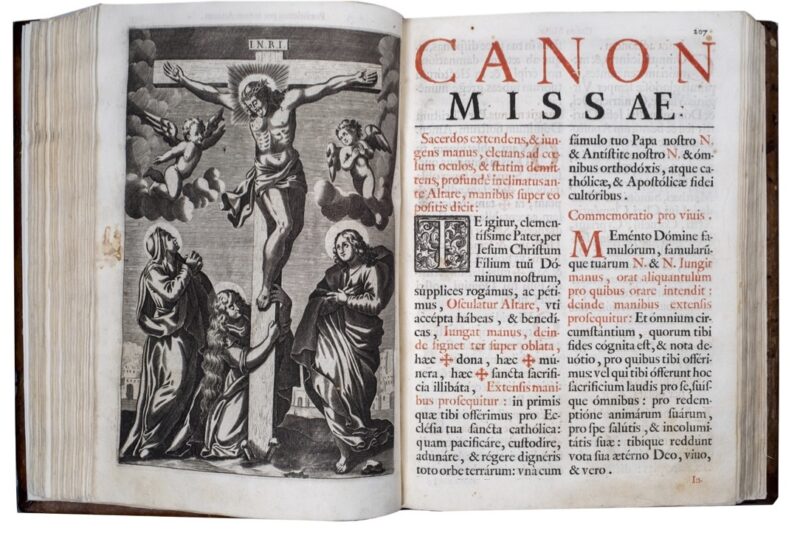 La selezione espositiva – spiega Matteo Giro – riporta a Venezia, centro nevralgico di una tradizione editoriale di portata europea, ma non solo: tre edizioni delle Missae et officia sanctorum Diocesis Concordiensis risultano pubblicate fra San Vito al Tagliamento e Portogruaro. Sotto il profilo artistico, il nome più ricorrente nelle firme delle illustrazioni tra le pagine dei messali è quello dei Piccini, la famiglia di incisori veneziani capitanata da suor Elisabetta o Isabella (1644-1734), la celebre monaca del convento di Santa Croce di Venezia, autrice qui dell’Annunziazione nel Missale veneziano del 1696. Si devono inoltre segnalare le abilità sia del maestro fiammingo Michael Heylbrouck (Gand, 1635-Brescia, 1733), che si firma nell’Annunciazione e Crocifissione del Missale romanum edito da Pezzana nel 1744, sia di Antonio Viviani (Bassano del Grappa, 1797-1854) che riproduce nel frontespizio di un altro Missale, pubblicato a Venezia nel 1838, il dipinto di Giovanni Busato (1806-1886) raffigurante Cristo tra gli apostoli che consegna le chiavi a san Pietro.