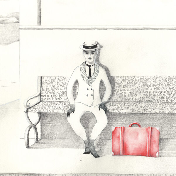 Vincent è il protagonista dell’esposizione, ispirato alla figura di Buster Keaton: lo vediamo prendere un treno per una destinazione ignota. In realtà è questo un percorso interiore verso la ricerca di sé stessi.